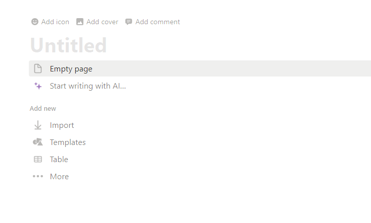 비어있는 페이지에 제목을 적어주고, 엔터를 누르면