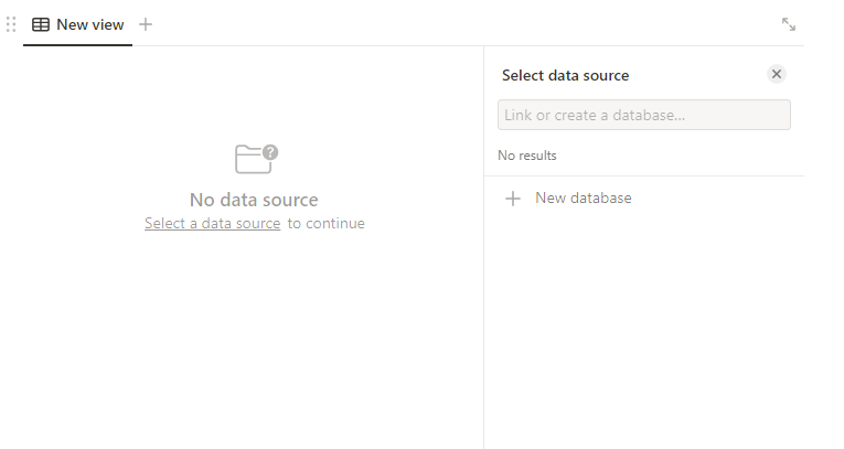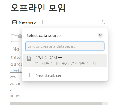 data source가 없다고 하는데요, 여기서 오른쪽의 New database를 선택해서 새로운 데이터 베이스를 만들어줍니다.