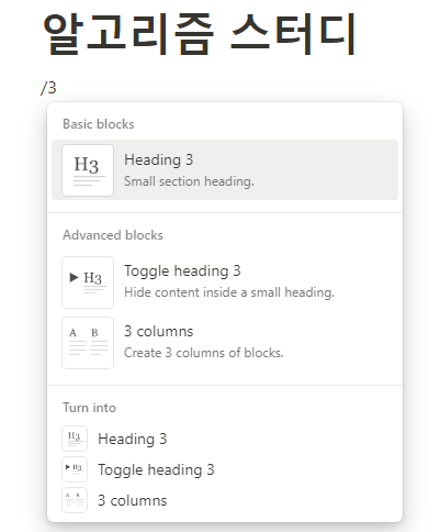/뒤에 3을 입력해주면 3 columns가 나오는데, 그걸 선택해주세요.
