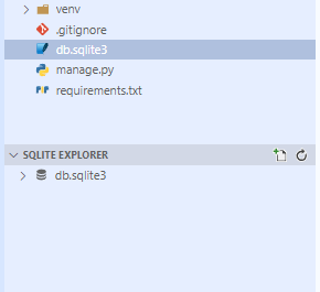 EXPLORER의 db.sqlite3파일 우클릭 > Open Datebase > SQLITE EXPLORER가 생긴걸 확인할 수 있다.