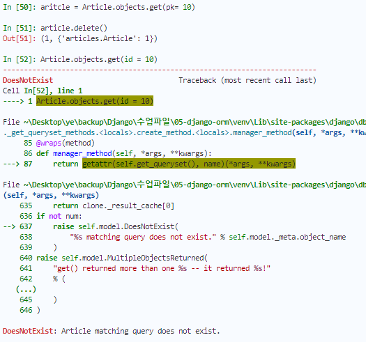 없을때도 에러 / 여러개 있을 때도 에러 → id나 pk와 같은 고유성이 보장되는 것으로 검색해야 함