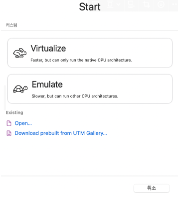 둘 다 설치가 완료 되었다면, UTM 실행 후 새 가상머신 만들기 선택