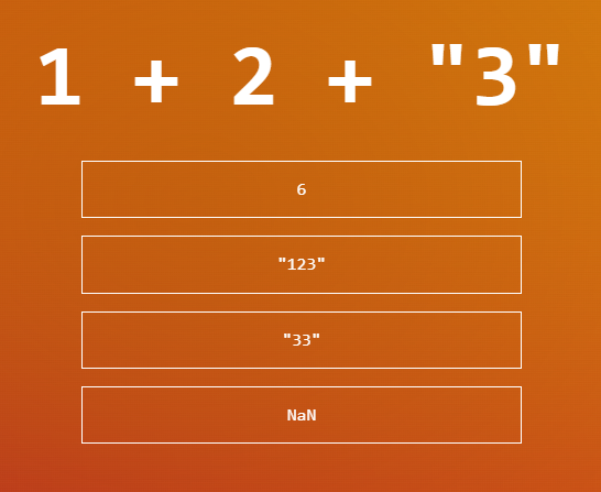 μ΄ λ¬Έμ μ λ΅μ "33"μΈλ°, μ묡μ νμ λ³νμ λ°λΌμ 1 + 2λ μ°μ 3μ΄κ³ , 3 + "3"μ΄ λλ―λ‘ "33"μ΄ λλ κ²μ΄λ€..