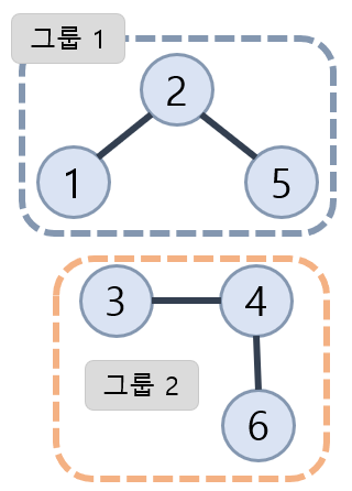 이렇게 각각 그룹을 만들어서 총 그룹의 갯수를 출력하면 됨!