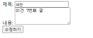- 수정에는 글을 쓰는 박스에 원래 있던 내용이 써져있어야 하므로, title에는 value로 원래 제목을 넣어주고