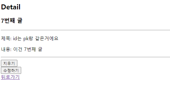 detail.html을 수정해서 수정하기 버튼을 추가해준다.