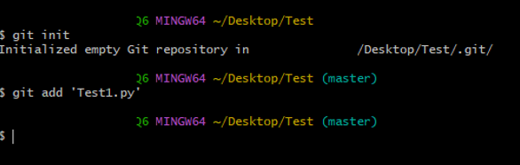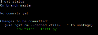 Test1.py파일이 add는 되었으나 commit이 아직 진행되지 않았음을 알 수 있습니다.