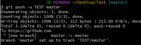 이후, git push -u origin master 명령어를 통해 아까전에 commit해둔 파일을 깃허브에 올릴 수 있습니다. 여기서 push란 로컬에서 원격으로 파일을 보내는 것을 말합니다.