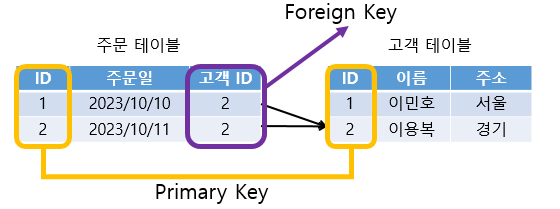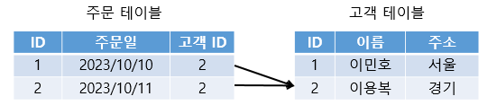 예를 들어, 주문 테이블과 고객 테이블이 따로 있을 때
